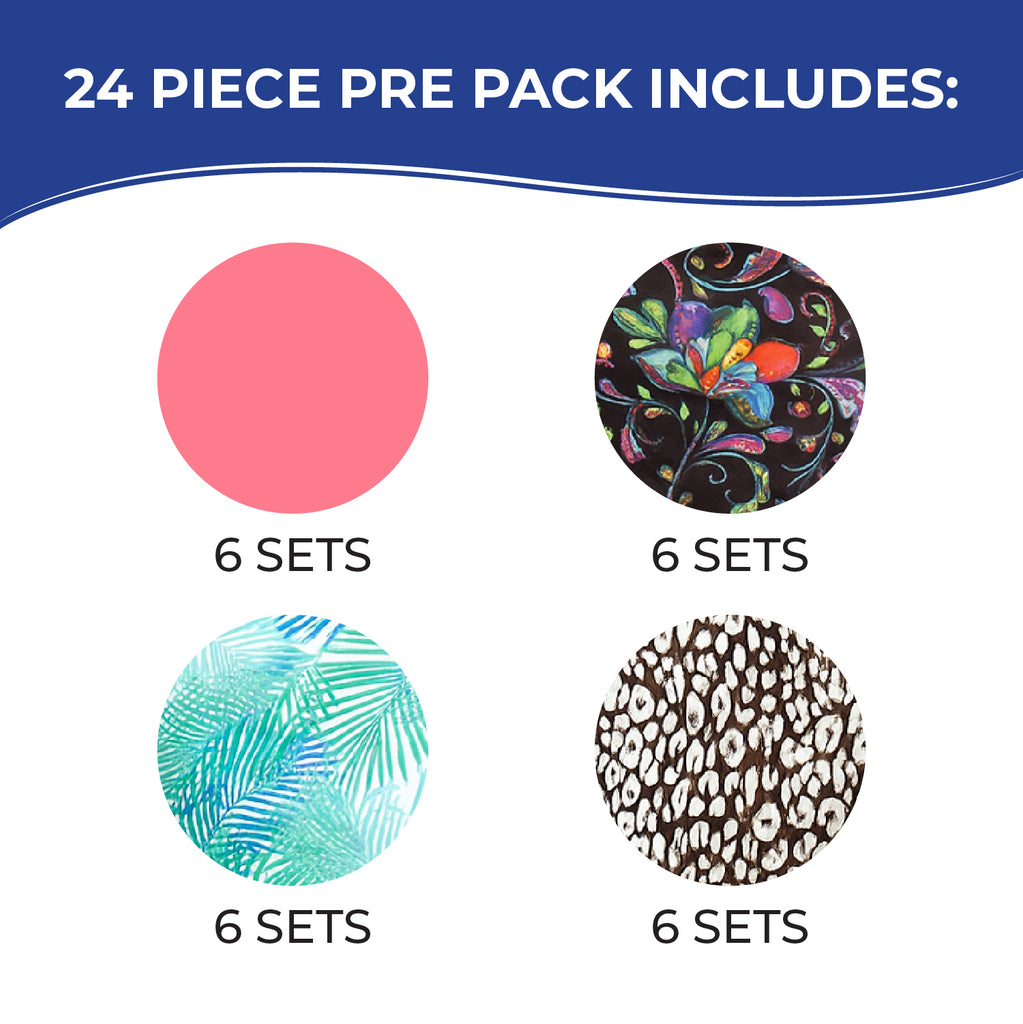 Add a stylish, ready-to-wear option to your swimwear collection with this women’s beaded strap one-piece and sarong set. The scoop neck one-piece features bead accents on each adjustable strap and removable soft cups for customizable support, paired with a matching sheer sarong for a coordinated beach-to-poolside look. Made from soft, stretchy fabric blends, this set comes in solid pink and three eye-catching prints: paisley, palm leaf, and leopard. Hangers are included for easy retail display. Each pack includes 24 or 48 pieces in sizes S to XL.