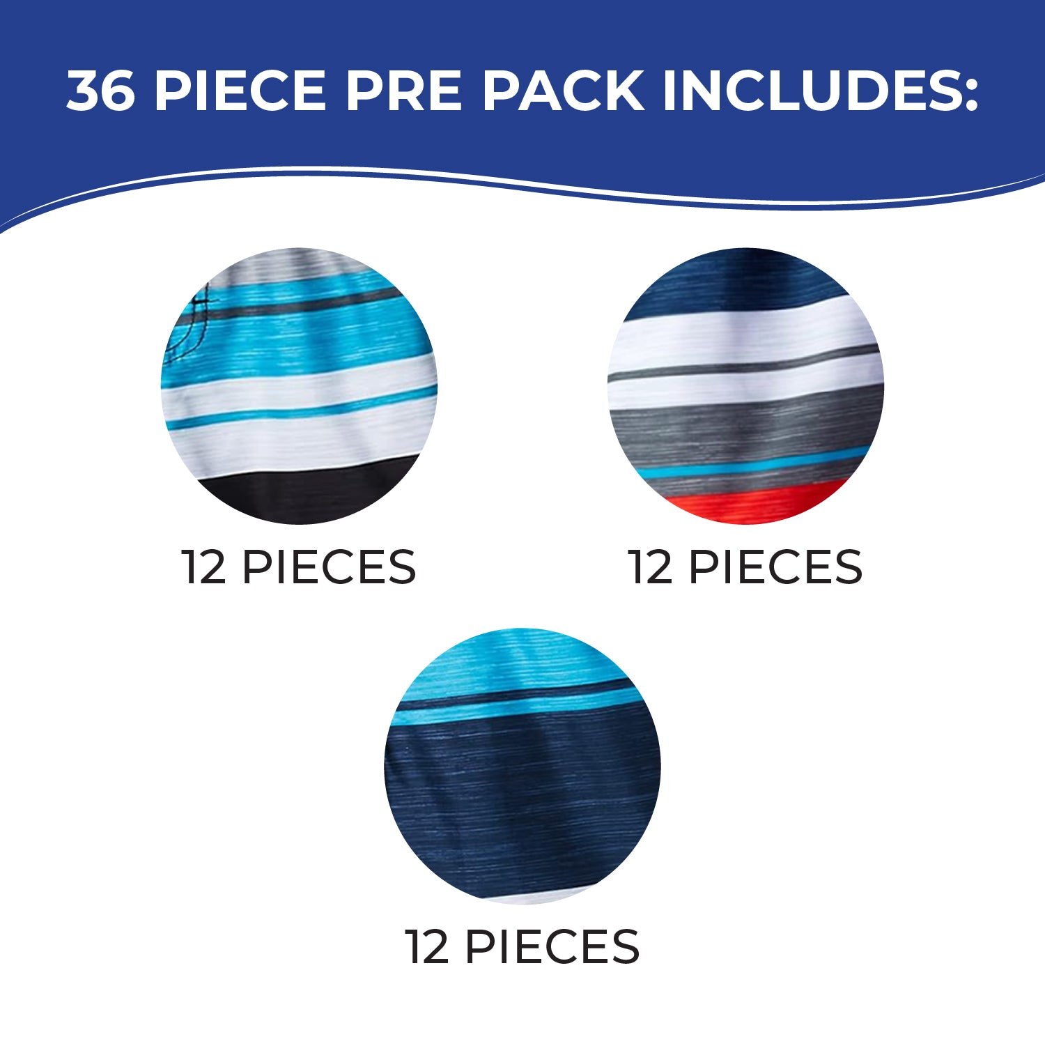 This little boy’s striped swim trunk features lightweight, quick-drying microfiber fabric with built-in UPF 50+ protection for safe fun in the sun. Each style includes a drawstring elastic waistband and three mesh-lined pockets—two at the sides and one Velcro cargo pocket for added functionality. Available in black, navy/red, and solid navy colorways. Sizes will vary by style. Sold in 18 and 36 piece prepacks.
