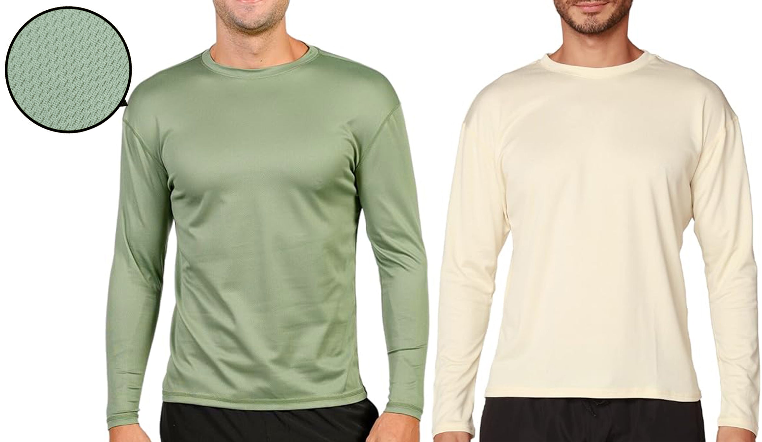 These rash guards are made from 100% polyester, featuring breathable, quick-drying fabric with UPF 50+ protection to help shield against harmful sun exposure.