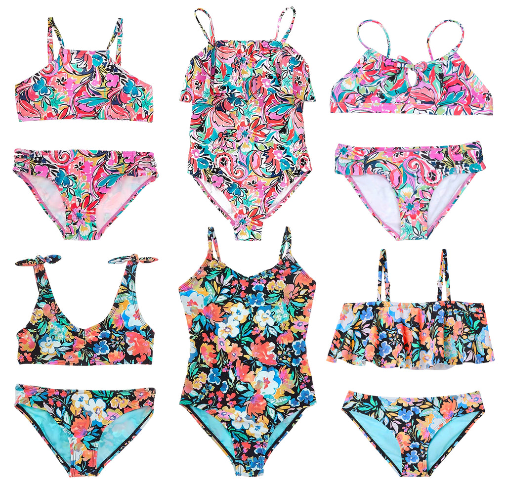 G-RAIN - Wholesale Girl's Printed One-Piece, Two-Piece & Rash Guard Two-Piece Swimsuit Collection