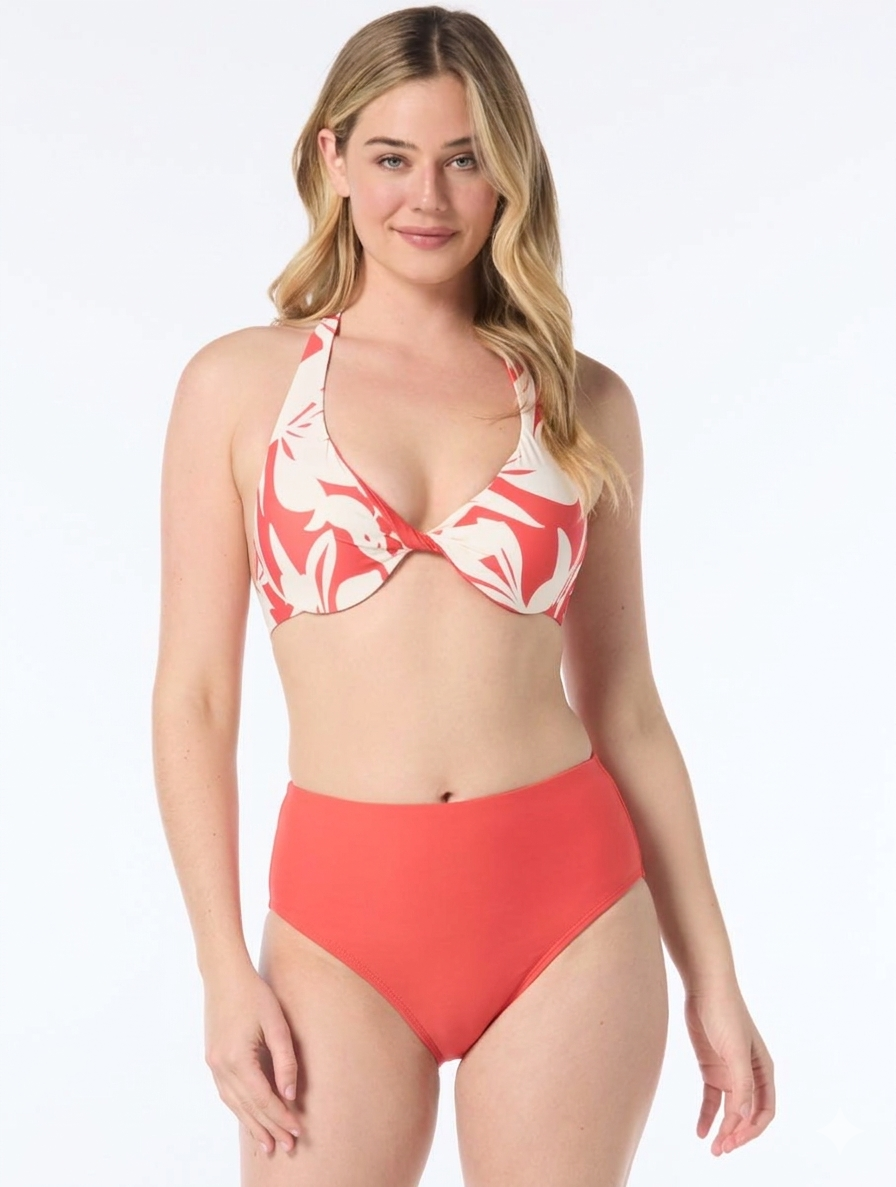 Elevate your swim assortment with this Women’s Reversible Cup-Sized Swimwear Set, designed for versatility, support, and standout style. Featuring an underwire bra top with adjustable straps or halter options, each piece delivers a secure, flattering fit with the added benefit of reversible styling. The assortment includes two sets with high-waist briefs for confident coverage and one with a layered mesh skirt for a feminine, fashion-forward touch. Crafted from a smooth, stretchy nylon-spandex blend, these sets offer comfort, shape retention, and all-day wearability. Available in Palms Print, Tropical Coral, and Multi Color Floral, this collection brings bold, resort-ready appeal to any retail display.