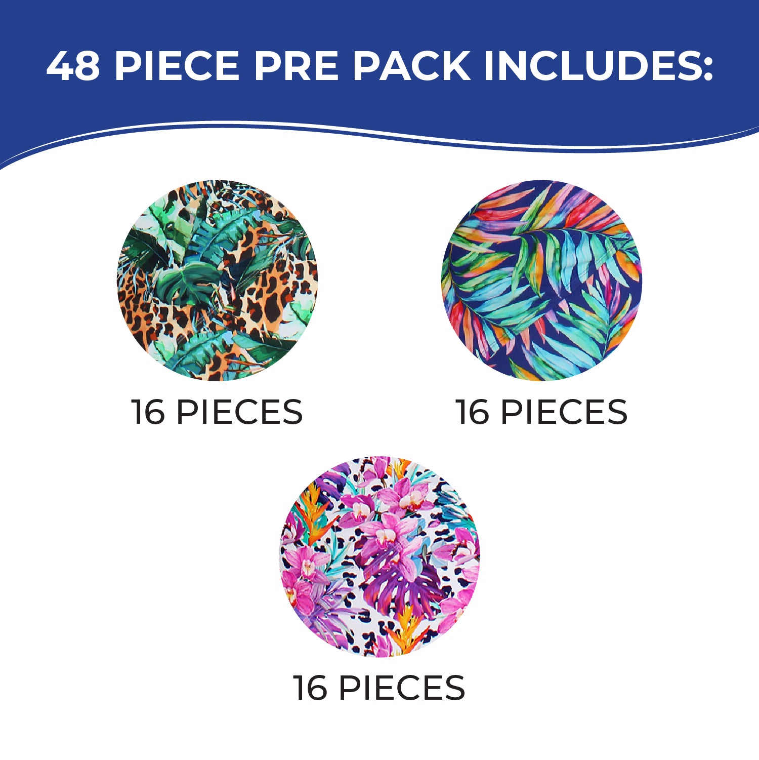 Make a statement with this classic one-piece swimsuit featuring a flattering surplice V-neckline and eye-catching gold O-ring detail at the waist. The faux wrap design enhances the silhouette, while adjustable straps and removable soft cups provide comfort and support. Crafted from smooth, stretchy fabric, this style offers full coverage and a timeless fit. Available in three vibrant prints in sizes 8 to 16. Sold in 24 or 48 piece prepacks.